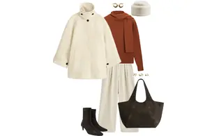 The Cream Poncho-Style coat with fringe detailing feels soft, elegant, and relaxed, offering an alternative to classic tailored outerwear. Outside of this outfit, it works beautifully layered over knit dresses, simple sweaters with trousers, or even over denim for a more casual look. It pairs best with clean silhouettes underneath and neutral or earthy tones such as beige, brown, grey, and soft white.