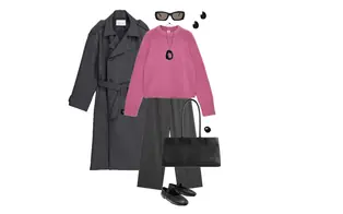 Outfit with Pink Sweater and Gray Trench Coat