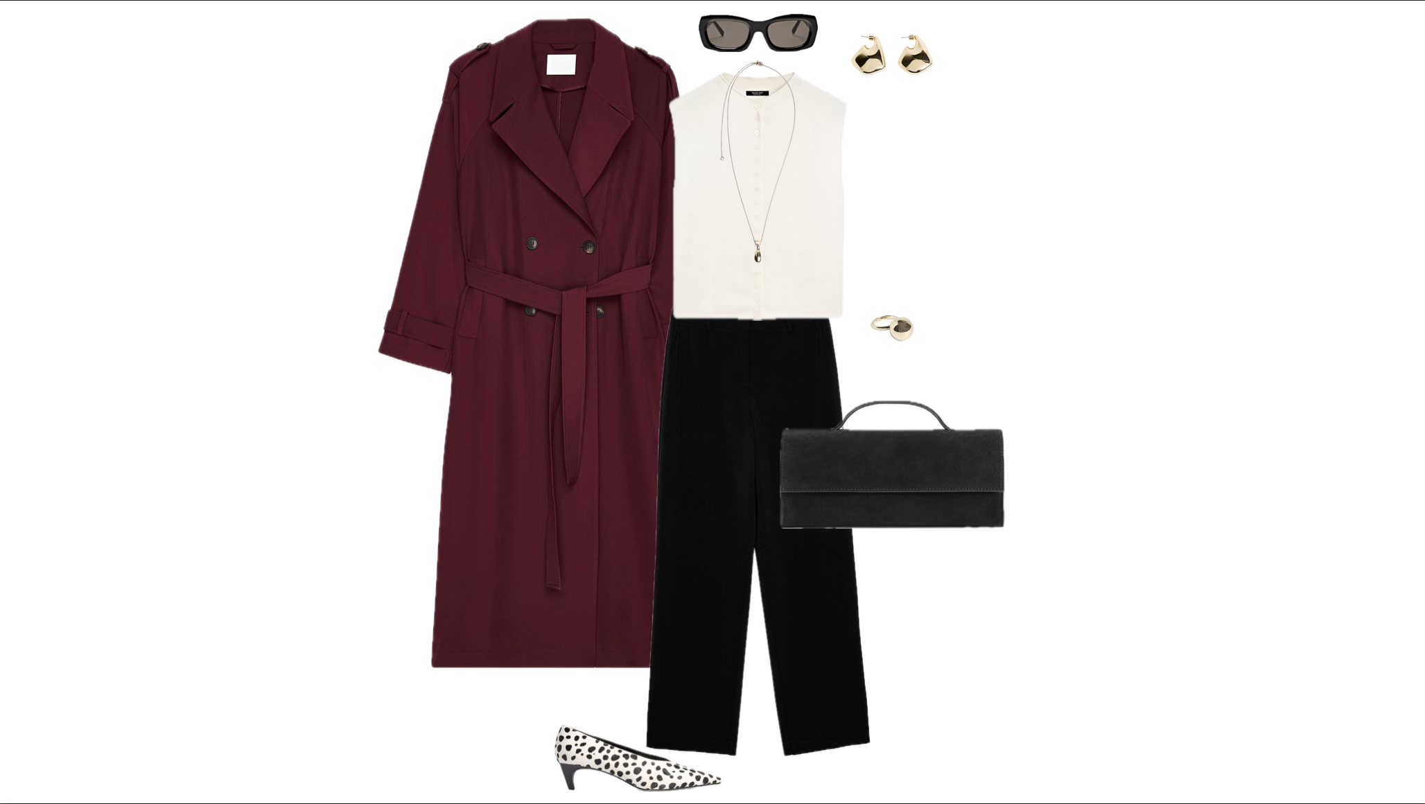 A burgundy Trench Coat is a sophisticated statement piece that adds depth and elegance to any outfit. For a polished daytime look, wear it over a white blouse, dark denim, and loafers. For evening occasions, drape it over a black dress with heeled boots and gold jewelry. It also pairs beautifully with neutral tones like beige, gray, or ivory for a refined, modern balance. To achieve a bolder style, layer it over monochrome looks—either all black for a dramatic effect or all white for high contrast. In cooler weather, you can belt it over chunky knits and wide-leg trousers for a stylish layered ensemble.