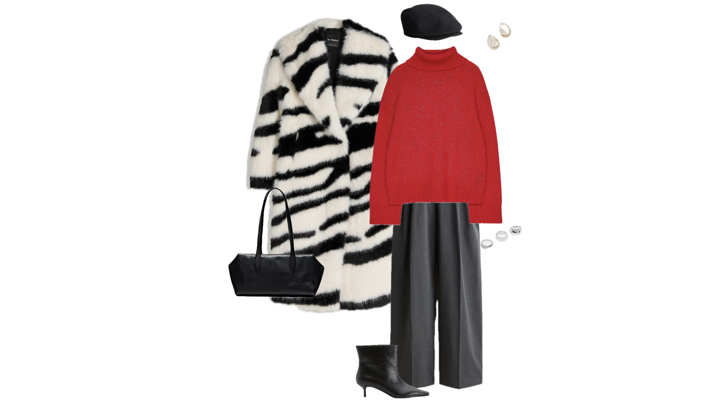 A Zebra Faux-fur Coat can be styled as a bold statement piece over minimalist looks. Pair it with all-black outfits—skinny trousers, a fitted turtleneck, and sleek boots—to let the coat be the focal point. It also works well with monochrome whites or creams for a chic winter palette. For Parisian-inspired styling, wear it with straight jeans, a simple knit, and loafers or heeled boots.