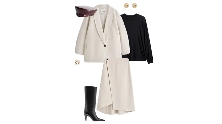 The Black Wool Coat can be styled with straight-leg denim, a cashmere turtleneck, and loafers for a polished everyday look. For evenings, pair it with a slip dress and heeled boots to keep the silhouette refined and minimal.