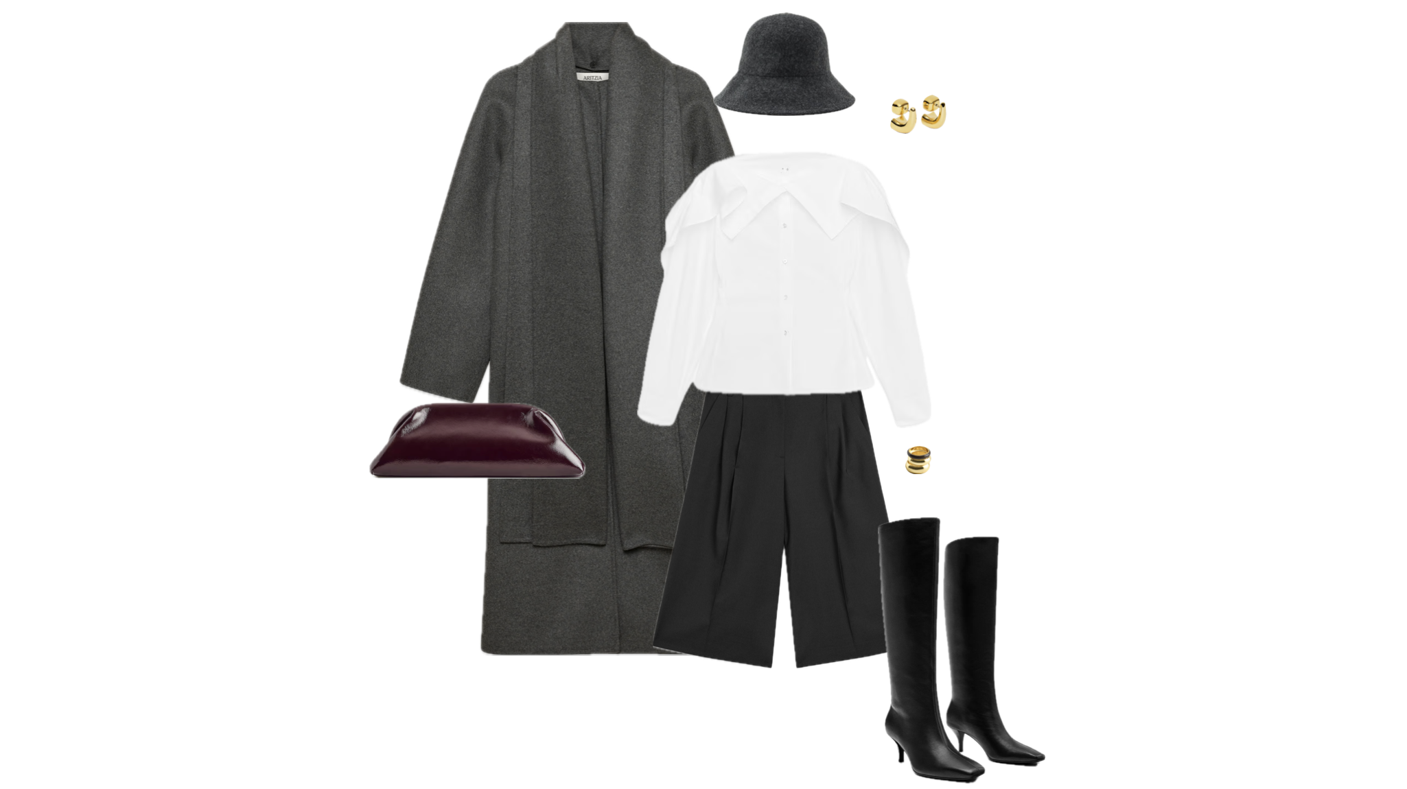 Outfit with a grey wool coat and tailored bermuda shorts