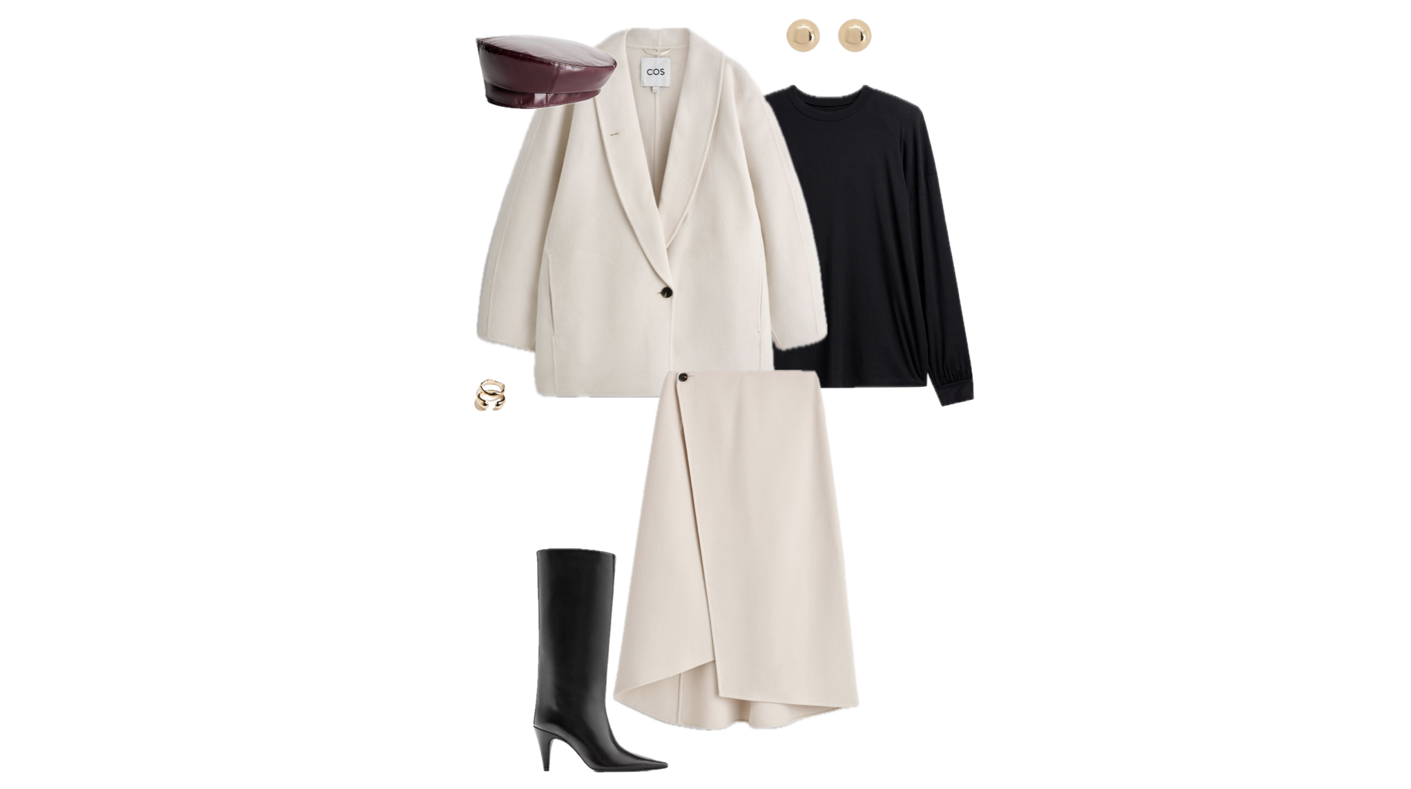 The Ivory Coat can be styled with straight blue jeans, a cream knit, and loafers for a soft casual look. It also pairs well with tailored black trousers and a turtleneck for a clean, minimal city outfit.