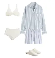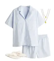 Outfit with a Satin Blue Pajama Set with Contrasting Stripes