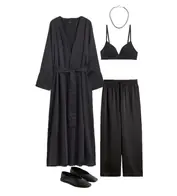 Outfit with a Satin Robe, Relaxed Trousers, and a Stylish Bralette