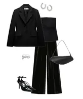 A fitted Blazer in the New Look style. This blazer won't work well in sporty outfits, but it can be incorporated into semi-relaxed ensembles. It’s a perfect addition to an elegant and feminine wardrobe. You can pair it with jeans or straight and wide-leg trousers, as well as skirts of various lengths, including straight and A-line silhouettes. Wear the blazer over tops or even directly over lingerie, as it provides sufficient coverage.